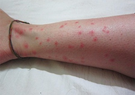 - Сыпь и аллергическая реакция. Данные симптомы также указывают на укусы блох.